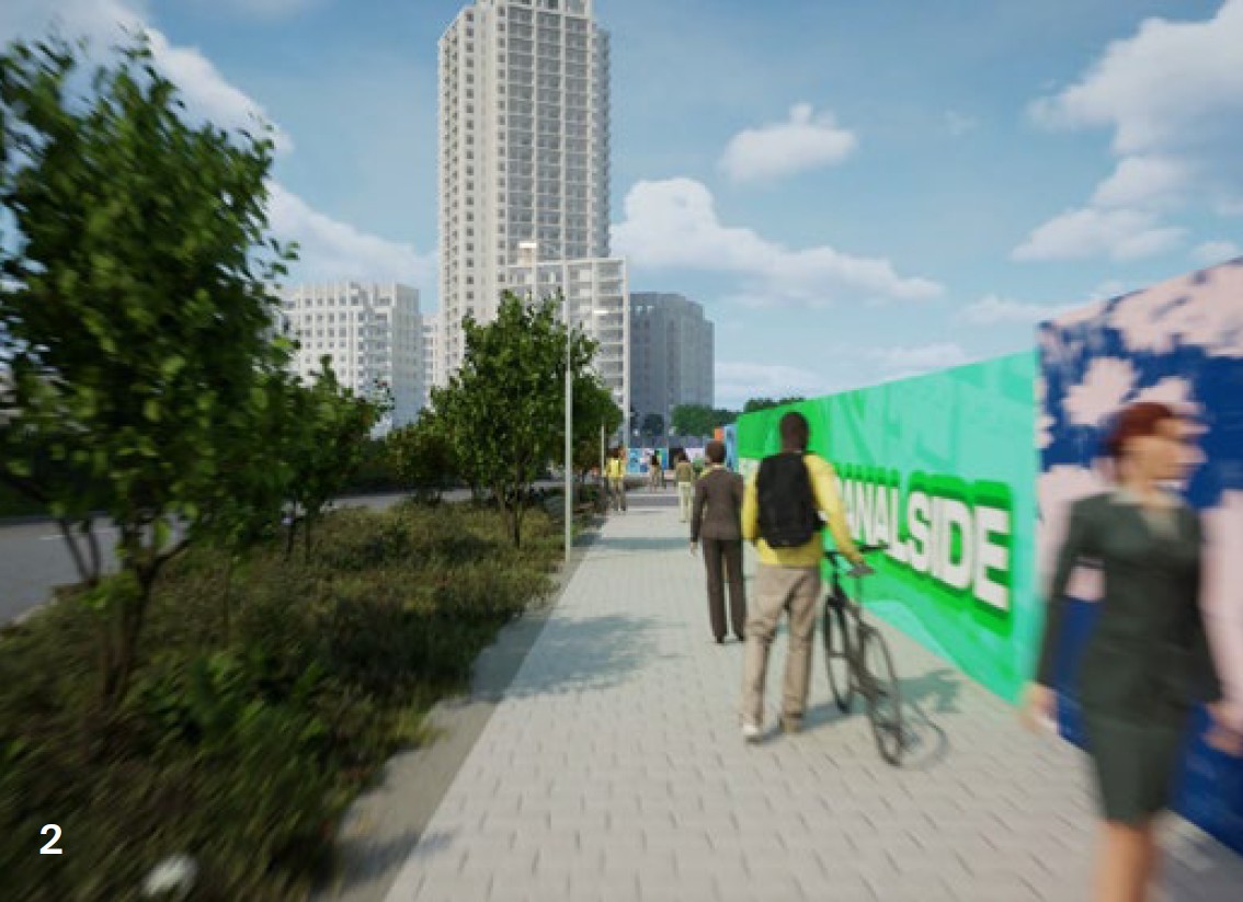 St William submitted a separate planning application to RBKC for the Canal Way Works. The application was validated under PP/25/03536 and a link to the application documents can be found here. A series of visualisations have been prepared for the Canal Way Works and are shown below along with the image key